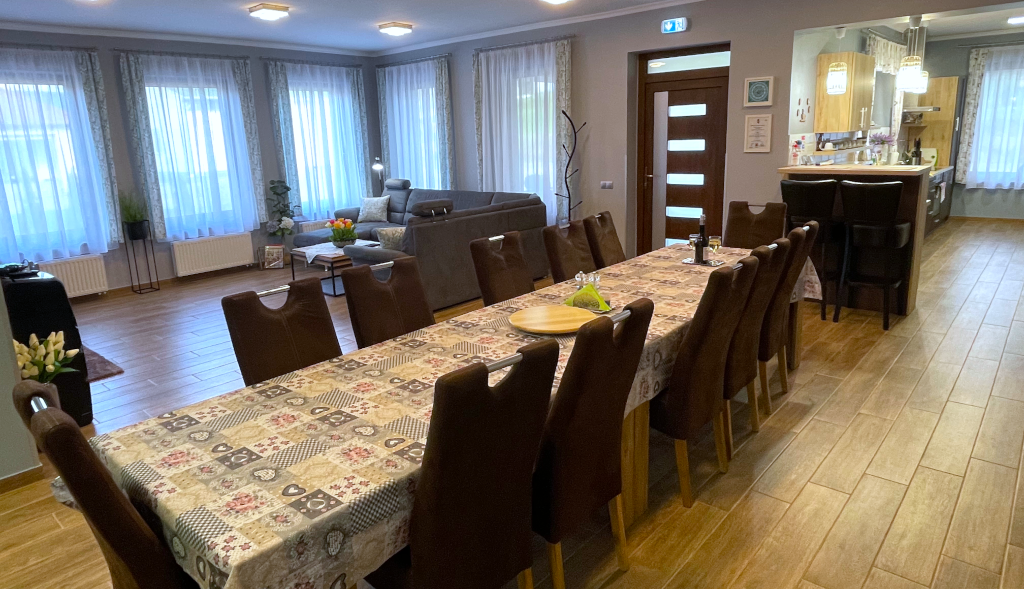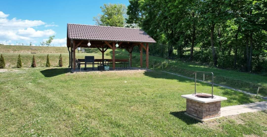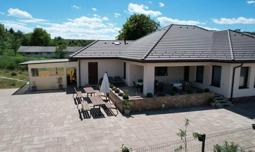 Vendégházunk közel 1 hektáros területen fekszik, hatalmas kerttel, nagy filagóriával és fedett terasszal. A házban nagy, amerikai stílusú nappali található, játszó sarokkal a gyermekek részére. A jól felszerelt konyha mellett egy spájz és egy terasz kapott helyet.